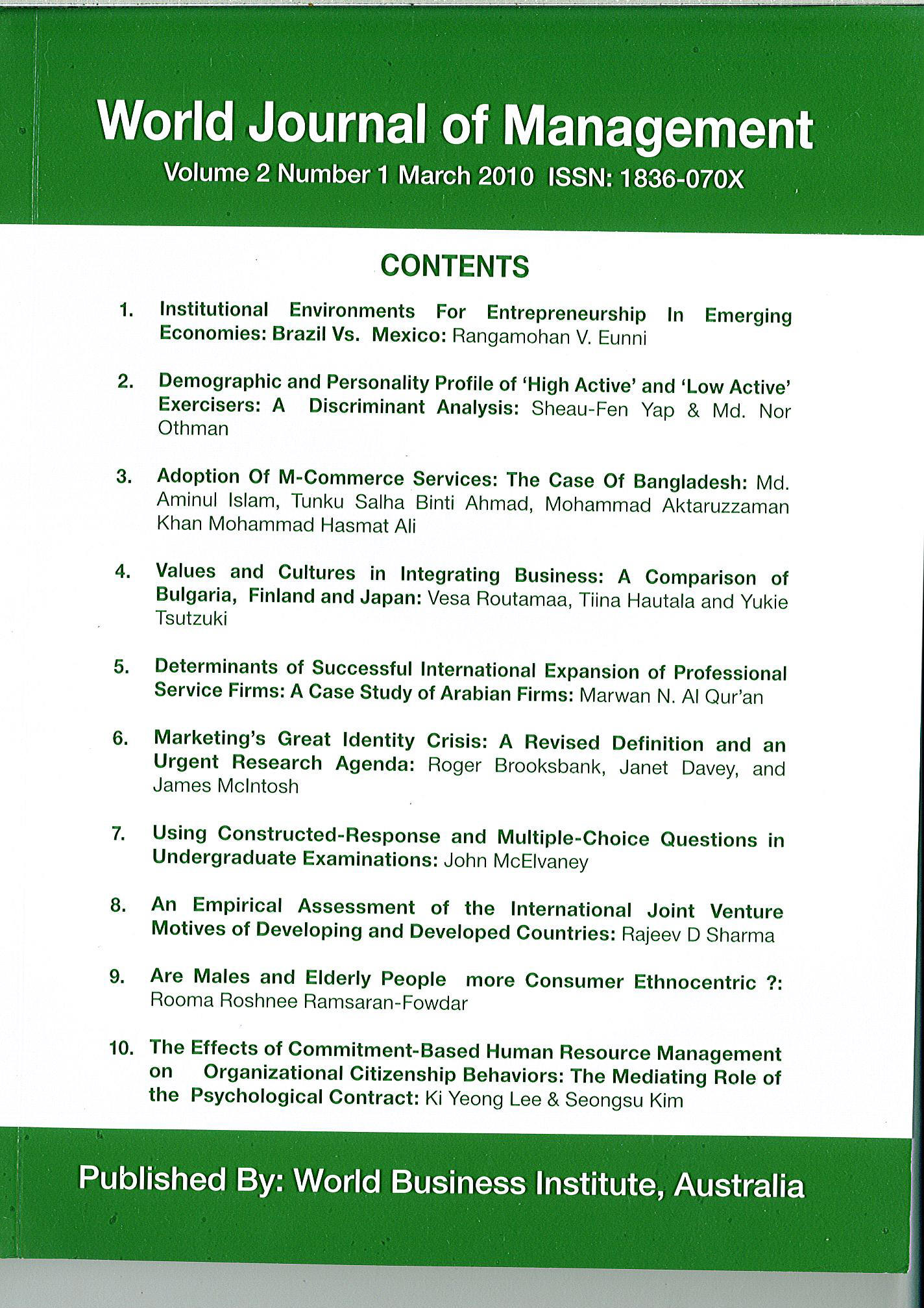 The aim of the World Journal of Management (WJM)) is to publish scholarly work that contributes to the body of knowledge . It publishes both theoretical and empirical scholarly papers and case studies relating to broad filed of General Management, Human Resource Management, Operations Management and Dynamics, Strategic Management, Leadership & Change, Business Ethics and all other issues relating to management. Another aim is to create modern literature relating to above fields of research.